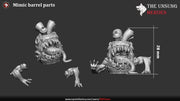 The Barrel Mimic miniature brings a classic Dungeons & Dragons monster to life. This creature disguises itself as a barrel, sprouting claws, fangs, and a hungry tongue to ambush unsuspecting adventurers. Perfect for villain encounters in Pathfinder, D&D, or Warhammer Fantasy campaigns.