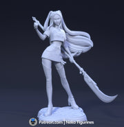 Mira is ready to slay—both demons and dance floors. This 1:7 scale collectible figure blends K-Pop glam with deadly precision, featuring Mira in her cropped battle tee, miniskirt, and high-heeled stance gripping her ornate glaive. Stylish, fierce, and perfectly balanced between idol and executioner.