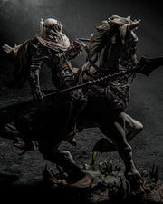 Ride into shadow with Dareios, an original CA3D creation. This 1:6 scale collectible features a hooded knight in intricate armor mounted on a fierce warhorse, wielding a massive spear. Perfect for fans of dark fantasy displays, this piece demands space and respect on any collector’s shelf.