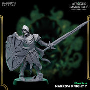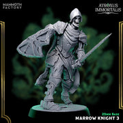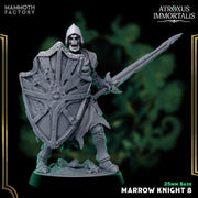 The Marrow Knights are skeletal champions clad in battered armor, each wielding swords and shields as relentless undead infantry. Designed for Dungeons & Dragons, Pathfinder, or Warhammer, these 25mm miniatures bring eerie bone-clad soldiers to reinforce your undead legions.