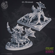Mh’azhounds are terrifying otherworldly beasts with jagged claws, spines, and alien features. These cosmic horror miniatures embody eldritch monstrosities, perfect for Dungeons & Dragons, Pathfinder, or Warhammer campaigns where players confront the madness of the far realms.