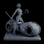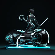 Quorra from Tron Legacy brought to life as a 1:6 scale collectible figure. Posed with a glowing identity disc and katana, standing alongside a sleek light cycle base. A must-have for fans of sci-fi and Tron, perfect for display with detailed cyber aesthetic.
