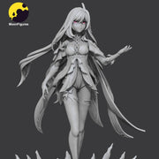 Skirk from Genshin Impact is sculpted in a 1:10 scale collectible figure, standing 198mm tall. With flowing hair, ornate armor, and a commanding pose, she stands on a rocky base with jagged crystal formations. Composed of 28 modular pieces for smooth assembly and painting, this model is perfect for Genshin collectors.