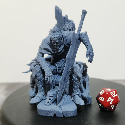 Dungeon Master MinisUnveil The Broken King, an intricately detailed miniature from Dragun Studios. Slumped over his greatsword on a crumbling throne, this haunting fi...