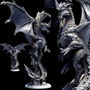 Majestic Adult Blue Dragon perched upon ancient ruins and guarding its hoard. Perfect for tabletop adventures like Dungeons & Dragons or Pathfinder. This detailed miniature, showcasing two poses, brings the fearsome essence of blue dragons to life, ideal for collectors or game enthusiasts.