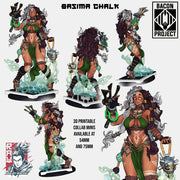Basima Chalk is a mystical 3D-printable miniature available in 54mm and 75mm scales. This powerful shaman wields arcane energy, adorned in intricate tribal armor with glowing magical effects. With her commanding stance and enchanted relics, she’s a striking addition to fantasy tabletop RPGs and collector displays.
