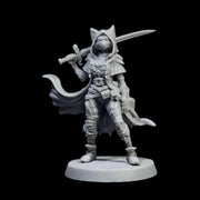 Marie Greenhood, the cunning vulpine rogue, prowls the shadows with a hooded cloak, twin weapons, and a deadly presence. This 3D-printed miniature is perfect for dark fantasy tabletop RPGs like Dungeons & Dragons, Pathfinder, or grimdark skirmish games, blending swashbuckling adventure with gothic aesthetics.