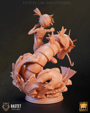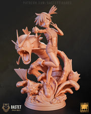 Misty from Pocket Monsters strikes a playful pose alongside a roaring Gyarados, with Starmie and Togepi at her side. This 1:8 scale collectible features dynamic water effects, intricate details, and also comes as a bust option. A must-have for Pokémon fans and anime figure collectors.
