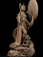 Collectible figure of Oni, showcasing a mesmerizing design with a traditional Oni mask, dual katanas, and a flowing kimono adorned with gold patterns. Set against a glowing red moon, this 1:6 and 1:9 scale masterpiece is perfect for fans of Japanese folklore and intricate display figures