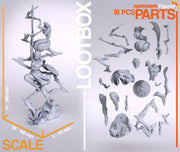 Urbosa from Legend of Zelda stands in a dynamic leaping pose with sword raised high, surrounded by stylized sand and lightning effects. This 1:10 scale collectible features detailed armor, flowing hair, and a Gerudo shield, composed of 18 parts. A striking figure for fans and collectors.