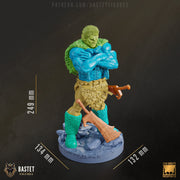 This 1:8 scale Zodd tribute from Berserk includes both a 249mm full-body figure and a 119mm bust version, each modular and pre-supported. Features crossed arms, fur cloak, massive blade, and two snarling head options. Includes bonus keychain of Zodd’s sword hilt for your cursed key ring.