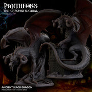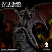 This Ancient Black Dragon from the Pantheons: The Chromatic Cabal collection stands tall with a mighty presence. Perfect for your next D&D adventure, scale comparison included!