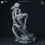 The Malice collectible figurine showcases a striking version of Invisible Woman from Marvel Rivals. She is posed dynamically, wearing spiked armor and a blindfold, with an intricate base featuring swirling energy. This 1:8 scale model is perfect for Marvel fans and collectors looking for a bold rendition of Sue Storm’s darker persona.